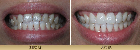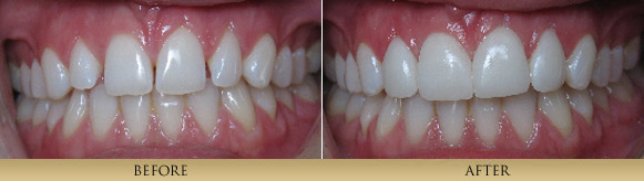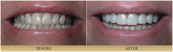 Through artistry and laboratory technique, we achieve outstanding and beautiful results restoring teeth with all- Porcelain Veneers and Porcelain Crowns. The cutting edge technology of adhesive bonding dentistry makes these restorations second to none. Many of the before and after cases you see here utilize this type of restoration-note their lifelike vitality. By removing unhealthy or cracked tooth structure and replacing it with natural looking porcelain, which fits the tooth like a thimble or jacket, we protect the remaining tooth structure and achieve a beautiful result.